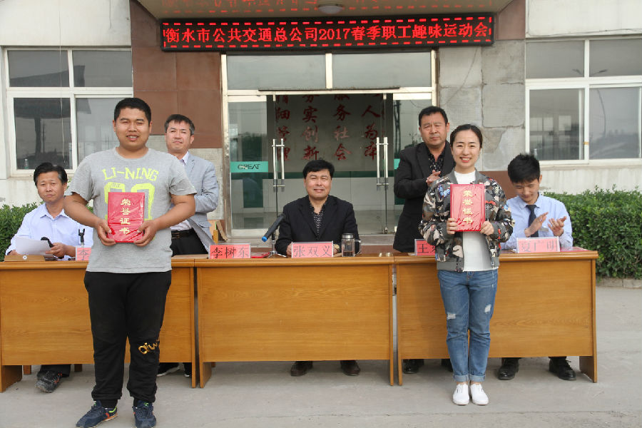為了進(jìn)一步增強(qiáng)公司凝聚力,豐富廣大員工的業(yè)余文化生活,經(jīng)過(guò)總公司工會(huì)的精心組織,充分準(zhǔn)備,4月25日下午,總公司在一分公司停車(chē)場(chǎng)成功舉辦了2017年度職工趣味運(yùn)動(dòng)會(huì)。來(lái)自各分公司和機(jī)關(guān)科室的近150名職工分別參加了拔河、接力滾輪胎、跳長(zhǎng)繩、袋鼠跳、自行車(chē)慢騎、個(gè)人跳繩、斗雞、綁腿跑、乒乓球、跳棋、踢毽子等11個(gè)趣味運(yùn)動(dòng)項(xiàng)目。比賽開(kāi)始前,全體人員起立,共同演唱了“衡水公交之歌”。隨后,總經(jīng)理張雙義同志宣布比賽正式開(kāi)始。經(jīng)過(guò)近3個(gè)小時(shí)的激烈角逐,全體參賽職工充分發(fā)揚(yáng)敢于拼搏、互幫互助、尊重比賽、尊重裁判、尊重對(duì)手的優(yōu)良風(fēng)格,圓滿(mǎn)完成了各項(xiàng)比賽任務(wù),賽出了風(fēng)格、賽出了水平,取得了運(yùn)動(dòng)成績(jī)和精神文明的雙豐收。本次比賽4個(gè)團(tuán)體項(xiàng)目共產(chǎn)生男、女各4個(gè)團(tuán)體冠軍,7個(gè)個(gè)人項(xiàng)目各自決出前三名。在團(tuán)體項(xiàng)目中,一分公司男子代表隊(duì)、二分公司女子代表隊(duì)分別獲得了團(tuán)體拔河比賽的男女冠軍。三分公司男子代表隊(duì)、二分公司女子代表隊(duì)分別獲得接力滾輪胎項(xiàng)目的男女冠軍。二分公司男子代表隊(duì)、一分公司女子代表隊(duì)分別獲得袋鼠跳接力項(xiàng)目的男女冠軍。二分公司男子代表隊(duì)、機(jī)關(guān)女子代表隊(duì)分別獲得團(tuán)體跳長(zhǎng)繩項(xiàng)目的男女冠軍。在個(gè)人項(xiàng)目中,機(jī)關(guān)代表隊(duì)杜波同志憑借著超強(qiáng)的個(gè)人平衡和騎行技術(shù)獲得了自行車(chē)慢騎個(gè)人項(xiàng)目的第一名;在個(gè)人跳繩比賽中,二分公司代表隊(duì)的王猛同志憑借著超快的動(dòng)作獲得了第一名的好成績(jī)。在綁腿跑個(gè)人賽項(xiàng)目中杜波和李輝同志憑借著默契的配合獲得了第一名的好成績(jī)。在斗雞個(gè)人賽項(xiàng)目中陳毅同志憑借著靈活的身手和超強(qiáng)的體力分別獲得了第一名的好成績(jī)。在跳棋、乒乓球、踢毽子的比賽中高靜周、宋建申、谷玉分別獲得了第一名的好成績(jī)?偣救w領(lǐng)導(dǎo)班子成員在比賽現(xiàn)場(chǎng)為各路選手加油助威。比賽結(jié)束后,工會(huì)主席、副總經(jīng)理李海江同志主持了頒獎(jiǎng)儀式,總公司領(lǐng)導(dǎo)為獲獎(jiǎng)的團(tuán)體和個(gè)人進(jìn)行了頒獎(jiǎng)。最后,總經(jīng)理張雙義同志作了總結(jié)發(fā)言。這次運(yùn)動(dòng)會(huì)上,運(yùn)動(dòng)員強(qiáng)健的體魄、頑強(qiáng)的毅力和高超的競(jìng)技水平,給大家留下了深刻的印象;各代表隊(duì)真正賽出了風(fēng)格、賽出了激情;啦啦隊(duì)熱情助威、文明加油;裁判員嚴(yán)格計(jì)時(shí)記錄,公平裁判;工作人員認(rèn)真負(fù)責(zé),辛勤工作,保證了各項(xiàng)賽事順利進(jìn)行。通過(guò)運(yùn)動(dòng)會(huì)的舉辦,進(jìn)一步加強(qiáng)了總公司精神文明和企業(yè)文化建設(shè)工作,提高了全體職工的凝聚力、向心力,將健康和積極向上的企業(yè)精神傳遞給了每位員工,凝聚起了員工的巨大力量,激勵(lì)總公司全體職工,以更加昂揚(yáng)的斗志、健康的體魄積極投身到公交事業(yè)中去。