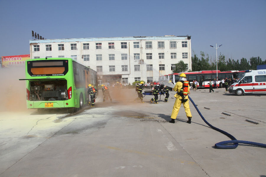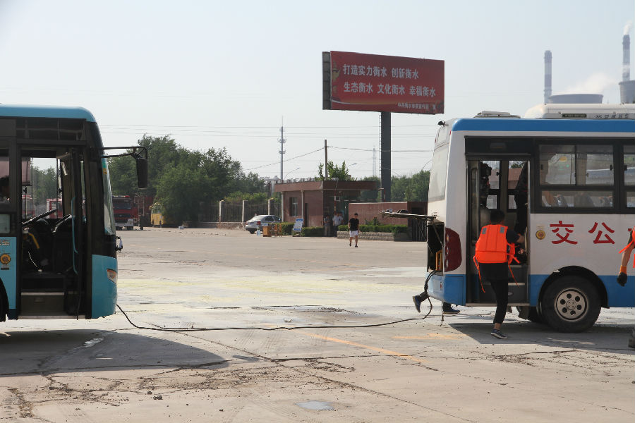 此次演練活動由衡水市公共交通總公司承辦,市公安局經保支隊、消防支隊、特警支隊協辦。事前各方參戰(zhàn)人員經過精心策劃、周密籌備、結合公交實際情況,共設置了三個演練科目,分別為:一、在公交車上發(fā)生劫持乘客的反恐、防恐應急實戰(zhàn)演練。二、純電動公交車營運中起火的應急演練。三、汛期搶險應急演練。