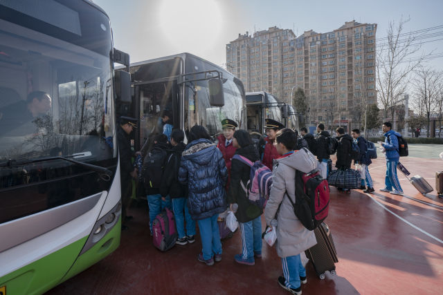 1月25日,衡水英才學(xué)校的260名孩子早早地收拾好行李,在學(xué)校操場(chǎng)上排好隊(duì)伍等待登車(chē)。衡水公交總公司副總經(jīng)理張新茂介紹,今天這些孩子將通過(guò)“公鐵聯(lián)運(yùn)”服務(wù)回到北京。公交公司負(fù)責(zé)學(xué)校到火車(chē)站的短途運(yùn)輸,衡水車(chē)務(wù)段負(fù)責(zé)向中國(guó)鐵路總公司提報(bào)運(yùn)力需求,打造團(tuán)體旅客“公鐵聯(lián)運(yùn)”一站式運(yùn)輸。