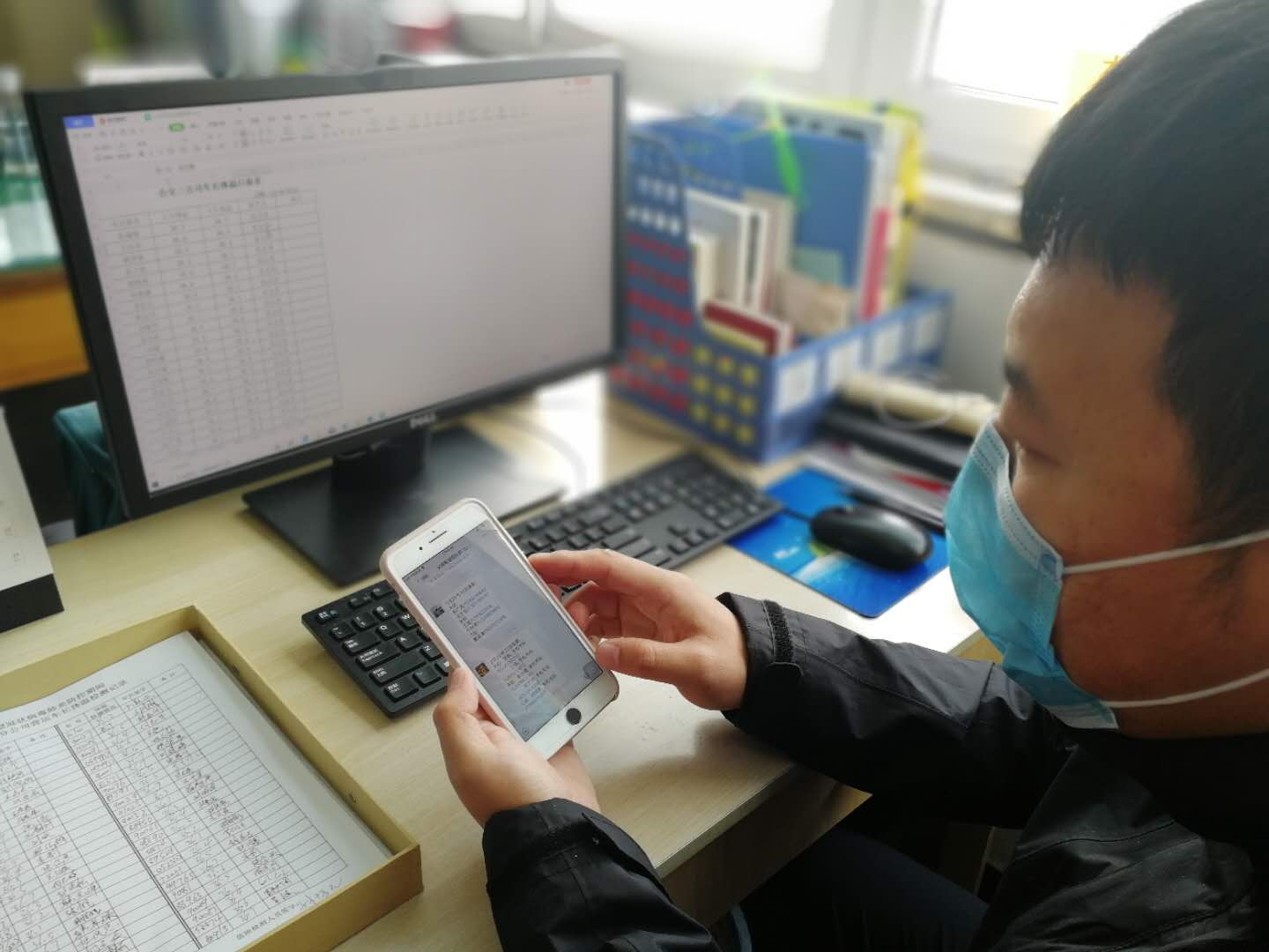 回到單位,已將近8時(shí)。羅霄拿出手機(jī),開始查看各路隊(duì)休班駕駛員的個(gè)人及家庭的疫情防控匯報(bào)情況,包括體溫、行動(dòng)軌跡等。分公司200多名員工,分布在9個(gè)微信群中,所有信息都需要收集整理下來!耙豁(xiàng)不能遺漏,一個(gè)人也不能遺漏,我們還會(huì)隨機(jī)抽查他們所在位置。”一番細(xì)致的排查后,全體人員“一切正!保_霄頓時(shí)舒口氣,快速將情況從手機(jī)導(dǎo)出,在電腦記錄備檔。    統(tǒng)計(jì)整理工作完成后,羅霄的主要精力就是盯著電腦屏幕遠(yuǎn)程監(jiān)控車輛運(yùn)營(yíng)情況。“今天好的多,沒發(fā)現(xiàn)什么異常!绷_霄說,目前乘坐公交出行的市民還不算太多,偶爾會(huì)發(fā)現(xiàn)車上乘客摘下口罩的情況,他會(huì)通知檢疫員及時(shí)提醒乘客做好防護(hù)。“目前,疫情防控形勢(shì)依然嚴(yán)峻,我們呼吁廣大市民,為了自身安全和他人健康,文明乘車,佩戴口罩,文明防疫,從自己做起。這不僅是對(duì)自己負(fù)責(zé),也是對(duì)他人負(fù)責(zé)!