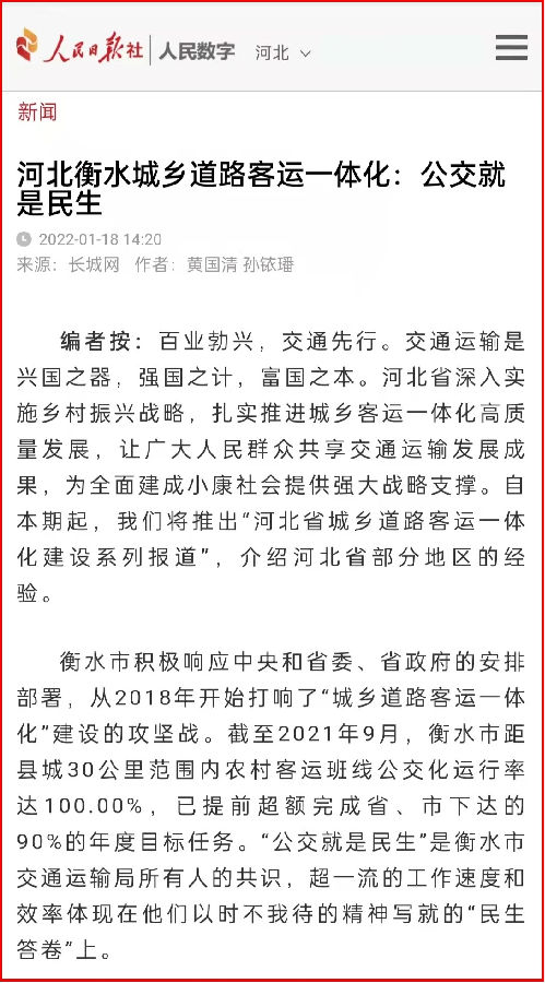 《人民日報社》人民數(shù)字聯(lián)播網(wǎng)這樣報道我市城鄉(xiāng)客運一體化工作