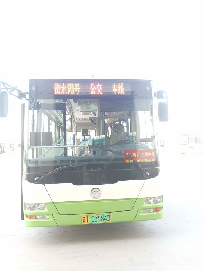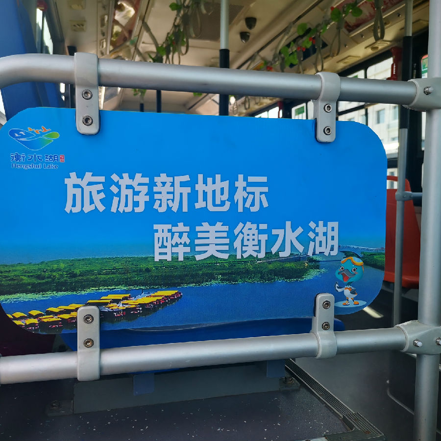 “衡水湖號”公交線路配備14部純電動新能源公交車,車輛頭尾LED屏為“衡水湖號”標識,車廂內(nèi)張貼宣傳標識,車身兩側(cè)張貼宣傳畫,沿途公交站牌為鋼化玻璃高標準公交站牌,全方位展示衡水湖美景,濃厚國家5A級景區(qū)宣傳氛圍,為廣大市民和游客游覽衡水湖景區(qū)提供綠色、安全、便捷、舒適的乘車服務。