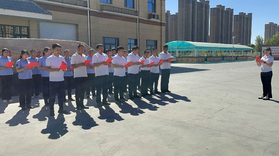 組織開(kāi)展了唱國(guó)歌活動(dòng),在雄壯的國(guó)歌聲中,在場(chǎng)的公交職工對(duì)著國(guó)旗大聲歌唱。