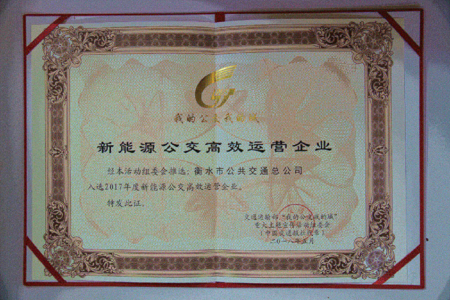 衡水市公共交通總公司榮獲交通運(yùn)輸部主辦、中國(guó)交通報(bào)社承辦“新能源公交高效運(yùn)營(yíng)企業(yè)”稱(chēng)號(hào)